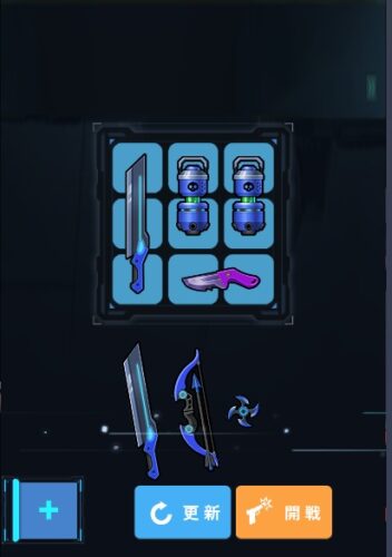 まずゲームをスタートしたら、「ゲーム開始」を押してください。そうすると、マスに武器を配置しておけるようになっているので、そこにできるだけ武器を設置してください。