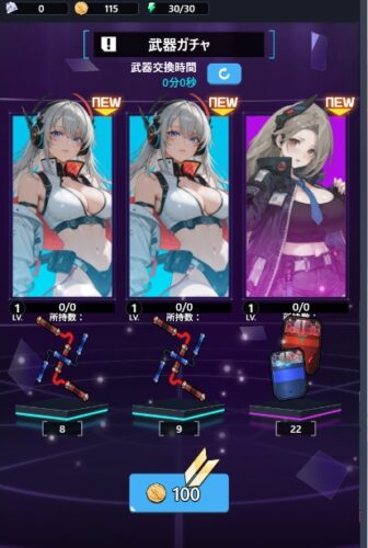 戦闘に1回勝ったら、次は武器ガチャを行います。
