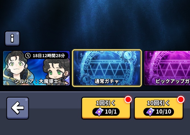 チュートリアルガチャ10連+その後の通常ガチャ10連で1回あたり合計20回のガチャをまわせて、125回こなしてようやく1体ゲットできる可能性があるという感じ。1回あたりのリセマラ時間は5分でできるとしても、これはかなり厳しいです。っカインをすれば、ピックアップガチャで1.1%の確率でピックアップキャラが出るので多少は楽になりますが、それでも1.1%は100回に1回という確率なので厳しのは間違いありません。