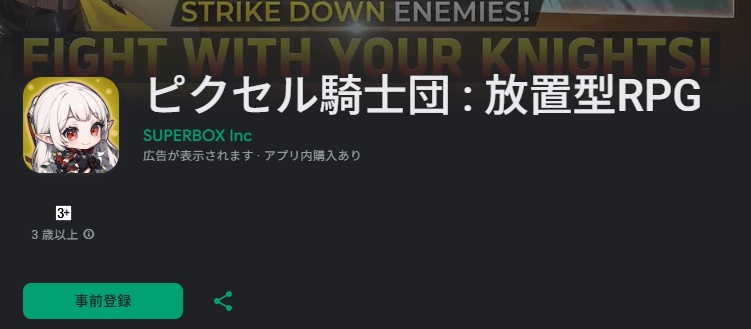 ピクセル騎士団は現状はまだApp Storeでは出てきていません。まだ審査中の可能性があります。