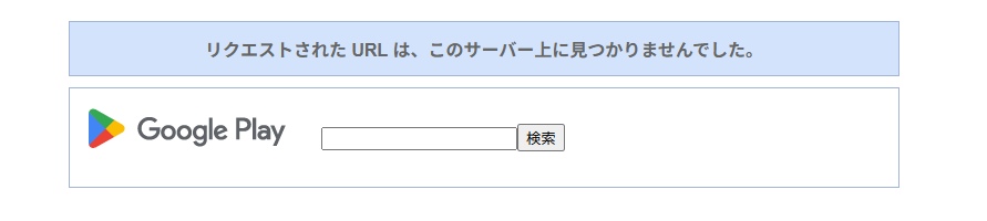 このように「リクエストされた URL は、このサーバー上に見つかりませんでした。」と表示されており、グーグルプレイから削除されたことがわかります。