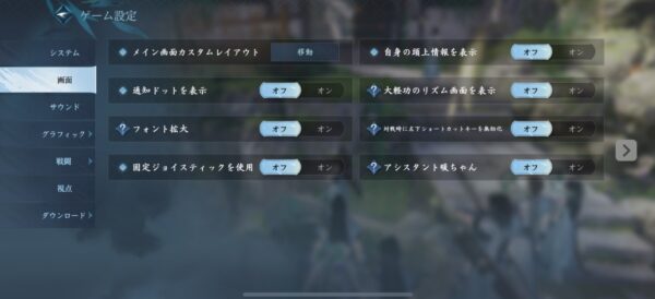 「高画質リソースから軽量リソースへの変更」で解説した内容と同様の操作で、ゲーム設定にアクセスしてください。そして、画面のタブから上の画面が表示されるのを確認してから、「あらゆる項目をオフ」にしてください。