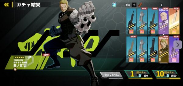 - 目標:ピックアップガチャで星5レノ(アタッカー)を引く。星5キャラ選択では四ノ宮攻(ディフェンダー)をゲットする。