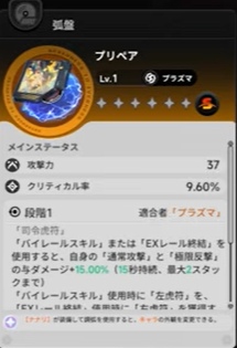 - プリペア(武器):与ダメージ+60%(通常攻撃・極限反撃)