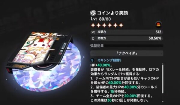 - ステータス補正:攻撃力 +512、防御力 +38.5%
