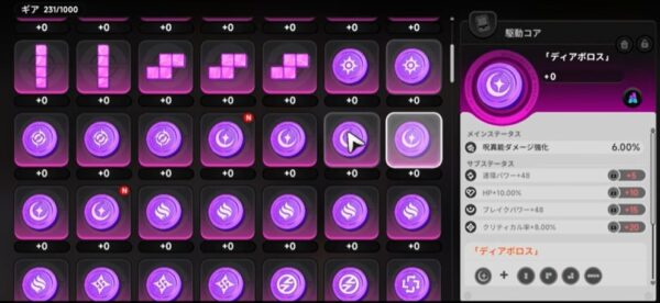 アノマリーウサギの穴では、ランダムで5つのステータス上昇効果が付いた駆動コア・駆動ブロックを厳選できます。