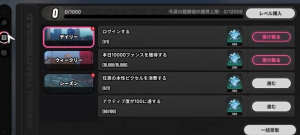 ただし報酬を受け取れるのは1週間に3回まで。毎週欠かさず挑戦するようにしましょう。