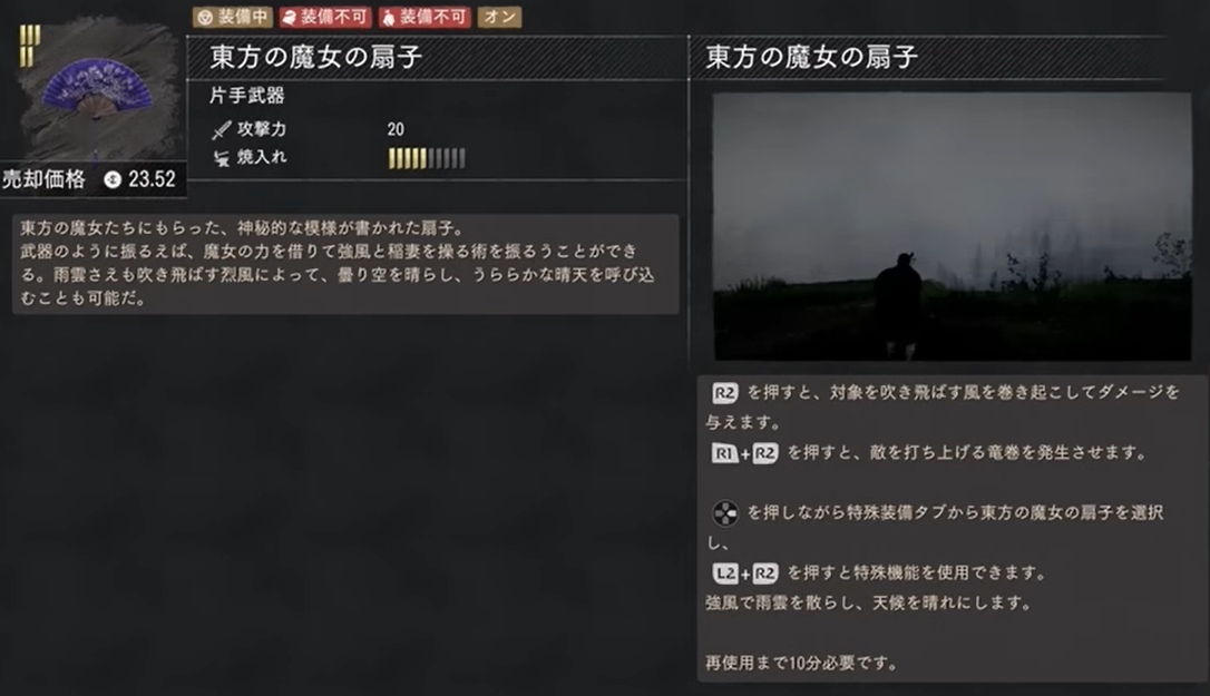 隠し武器「東方の魔女の扇子」の評価