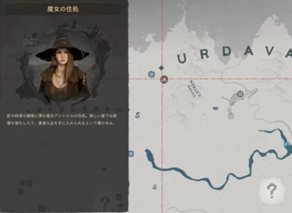 メインクエスト第5章「招かれざる客の白と黒」を進めると解放されます。キャンプ拠点から西の位置に隠れており、彼女の勢力クエストをクリアすることで、他の魔女たちと出会うための道が開かれます。