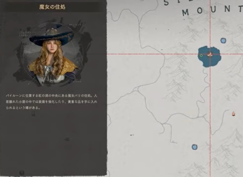 メインクエスト第5章「招かれざる客の白と黒」を進めると解放されます。キャンプ拠点から西の位置に隠れており、彼女の勢力クエストをクリアすることで、他の魔女たちと出会うための道が開かれます。