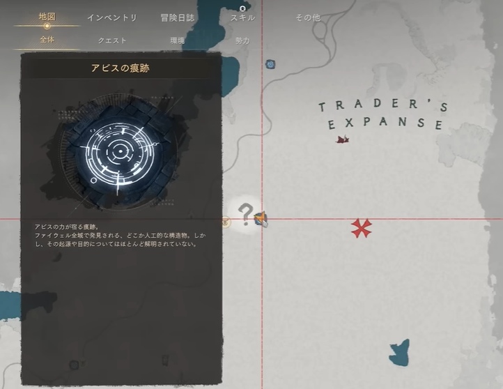 その文字の左下あたりにアビスの痕跡があるので、まずそこを解放しておきましょう。