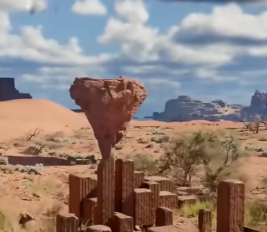 アビスの痕跡を起点に、オアシスを背にして反対方向を向くと、ハートマークのような変わった形の岩が見えます。