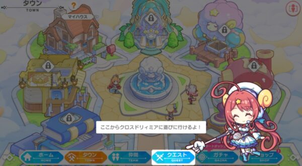ゲームの舞台は「クロスドリィミア」という架空のワンダーランド。複数の世界が交差する場所で、個性豊かなキャラクターたちと一緒に冒険や交流を楽しむ……という設定です。